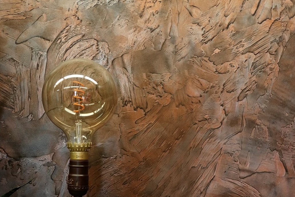 特殊なペースト状のベース塗料とメタリックパールのエフェクトフィニッシュによって、アイアン調のようなモダンな表面を創りだすことができる内装用塗料。